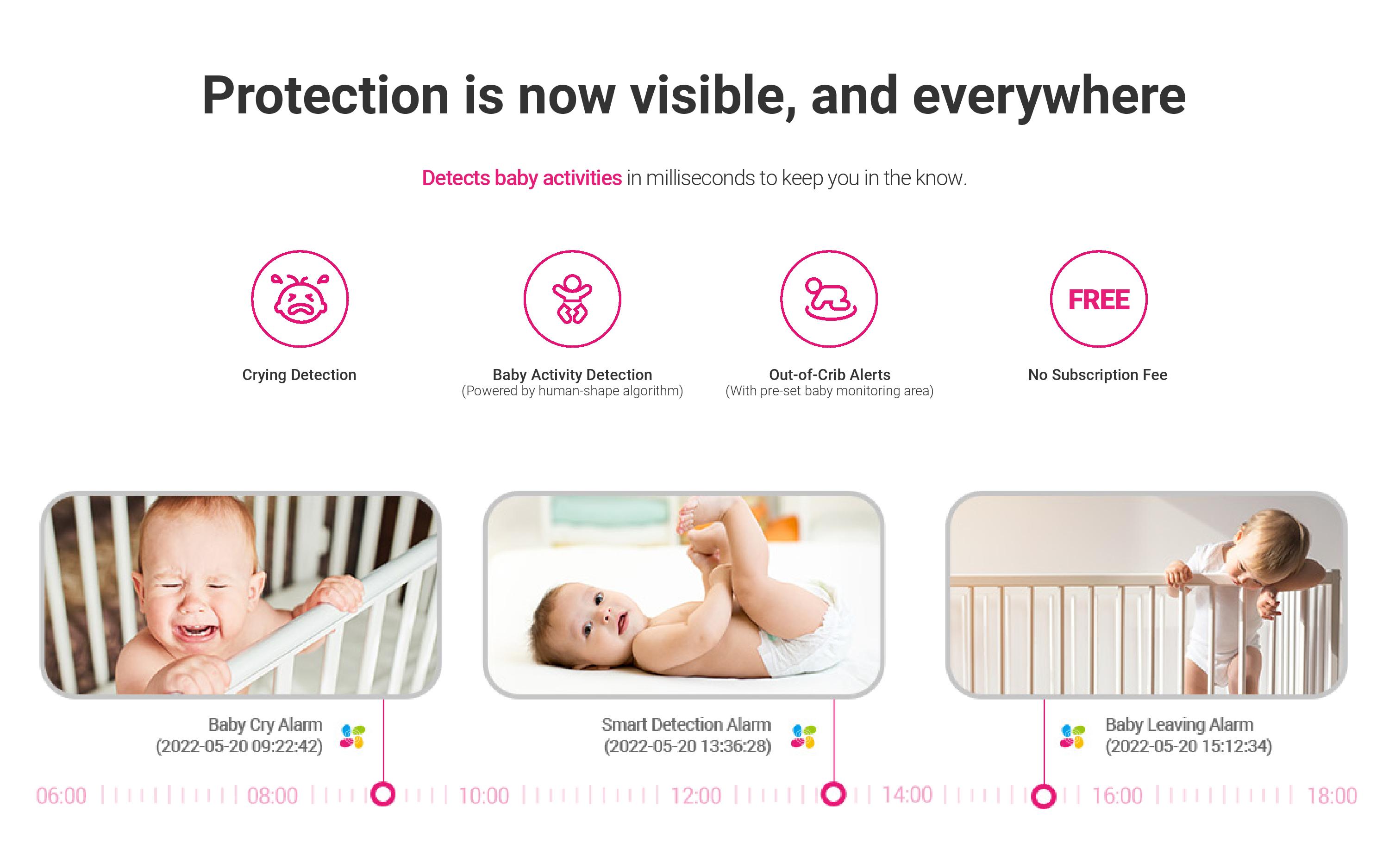 The Ezviz BM1 Baby Monitor delivers 1080P HD resolution for crystal-clear baby monitoring. Equipped with crying detection, two-way talk, and out-of-crib alerts, it helps you stay connected with your baby. Powered by advanced human-shape algorithm, it provides auto-play soothing music, clear night vision, and all-night 2,000mAh battery life. With 256GB storage, it's perfect for long-term peace of mind.