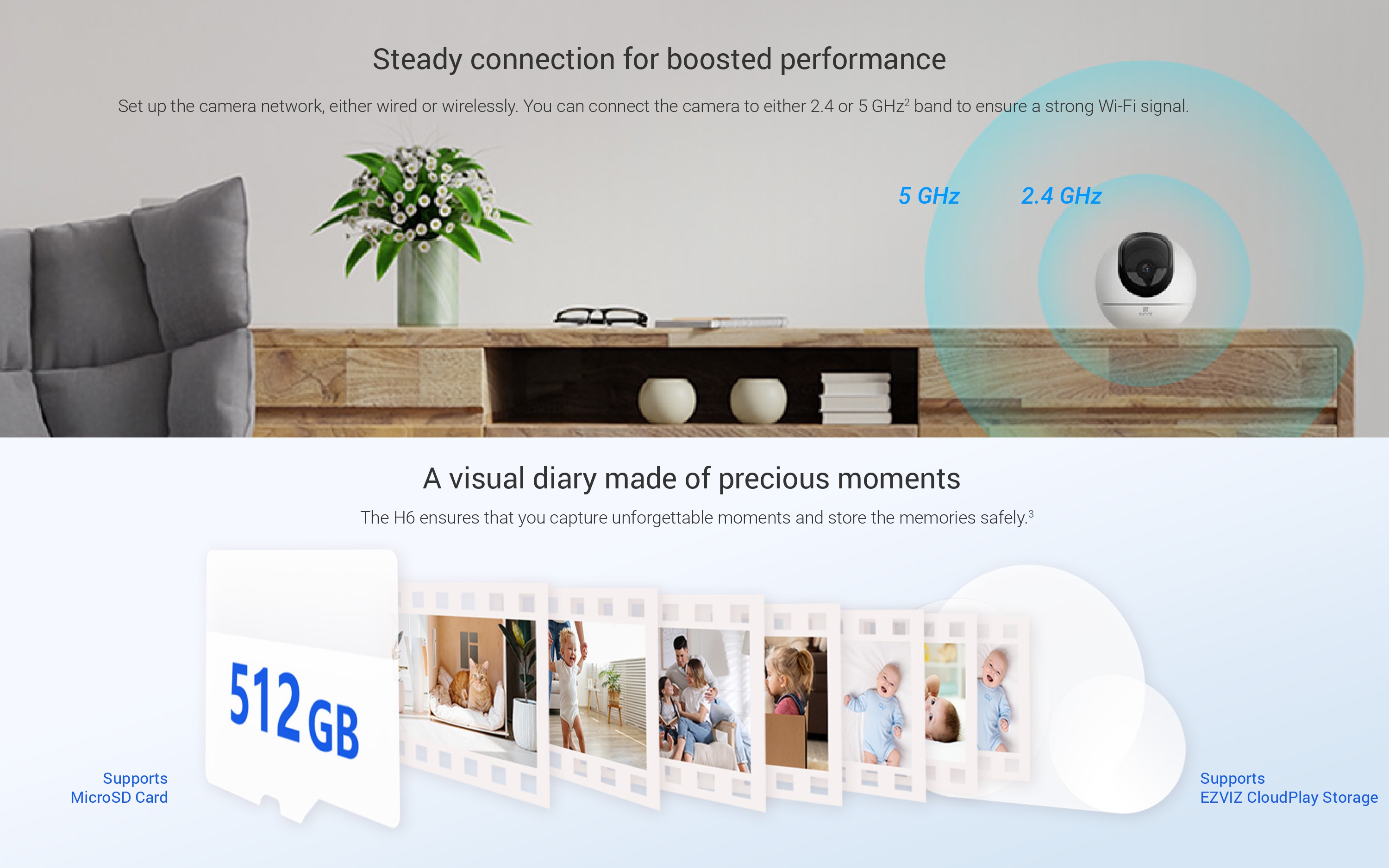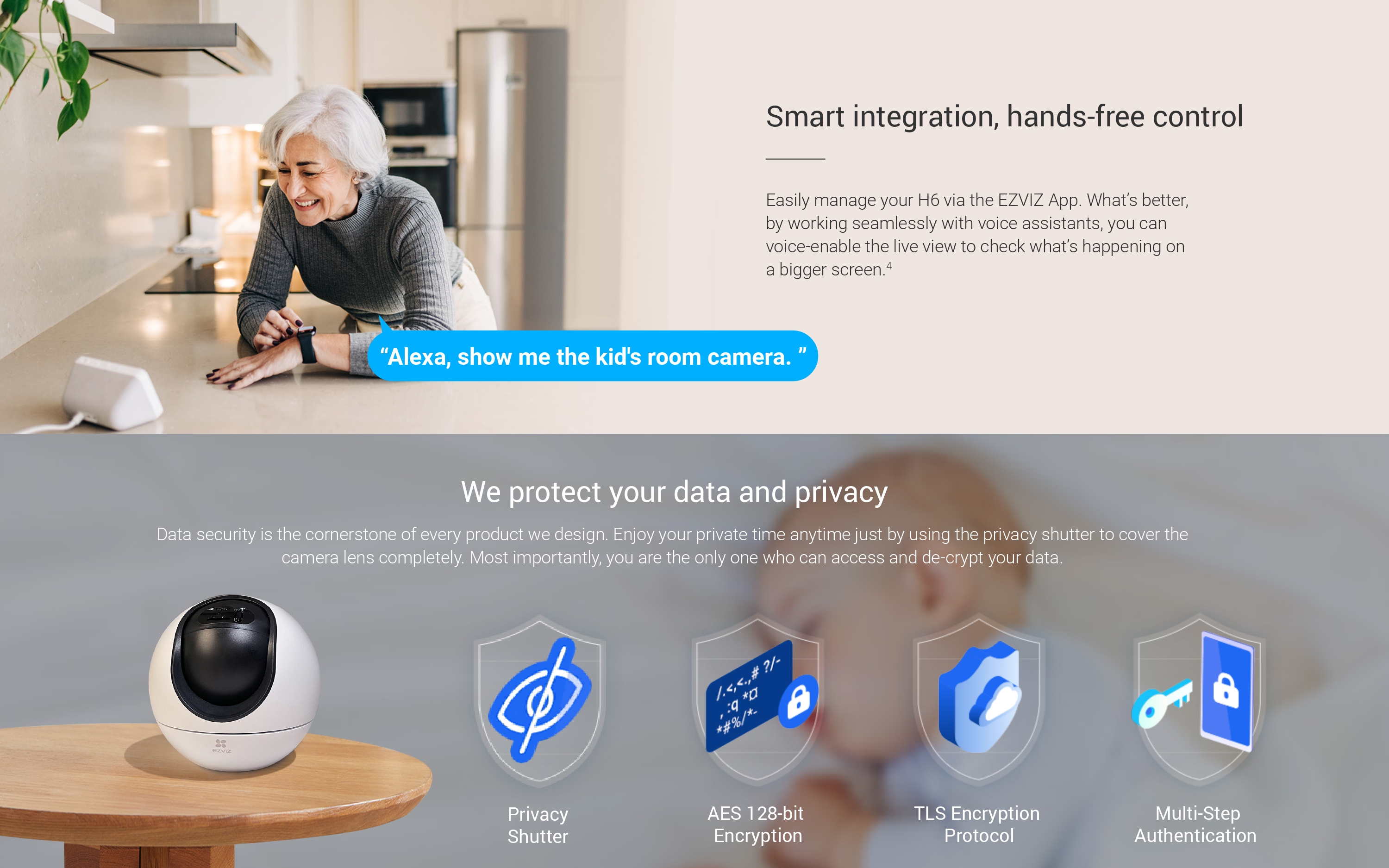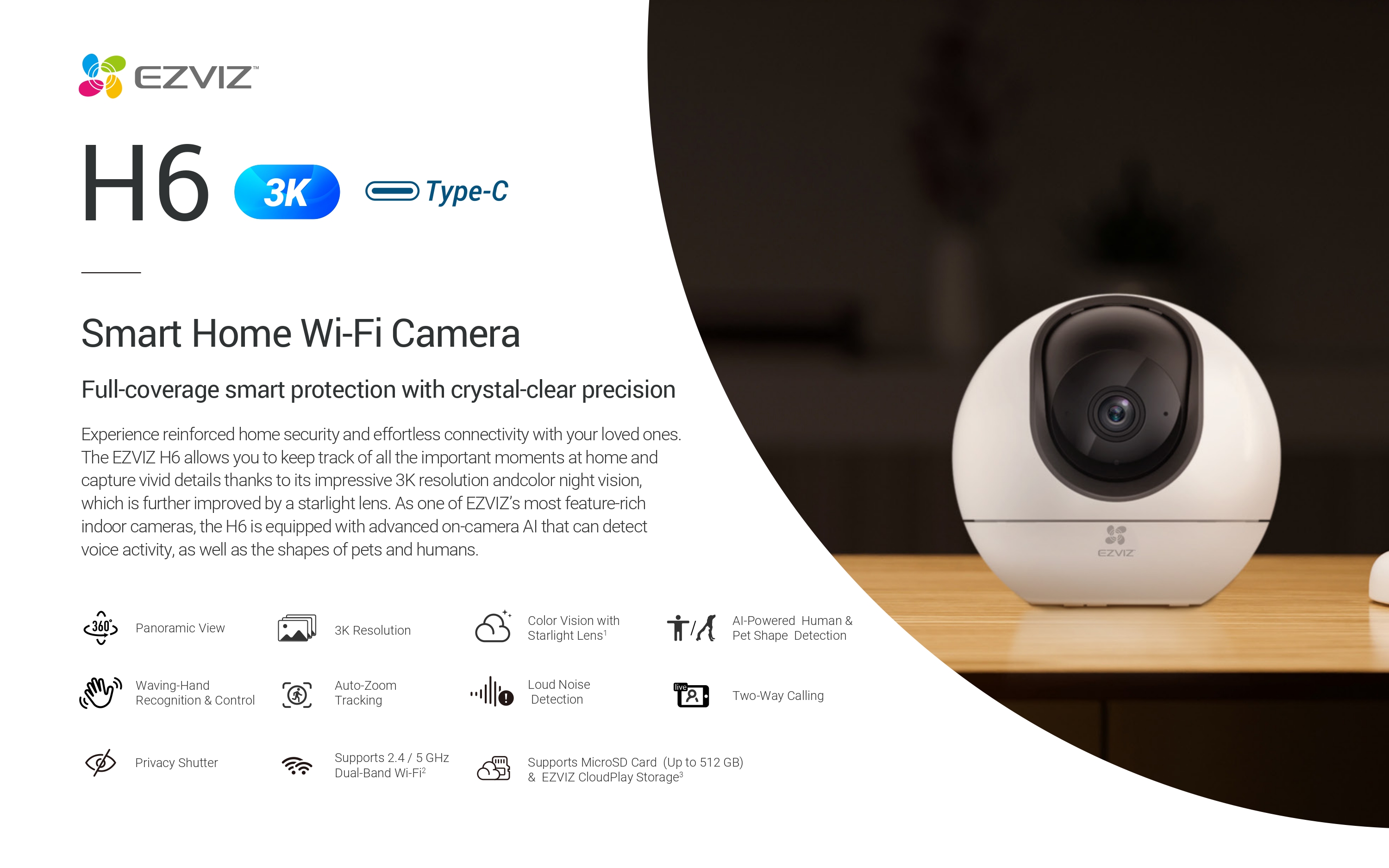 Experience top-tier security with the Ezviz H6 3K camera, delivering crisp 3K resolution and a panoramic view. Enjoy vibrant color vision, even in low light, with its Star Light Lens. Powered by AI, it detects human movement, while Voice Activity Detection and Waving Hand Control add convenience. Privacy is guaranteed with the built-in Privacy Shutter. Stay connected with Two-Way Calling and support for Dual Band Wi-Fi. The camera’s Auto Zoom Tracking ensures every moment is captured, and with 512GB support, it offers ample storage for your security footage.