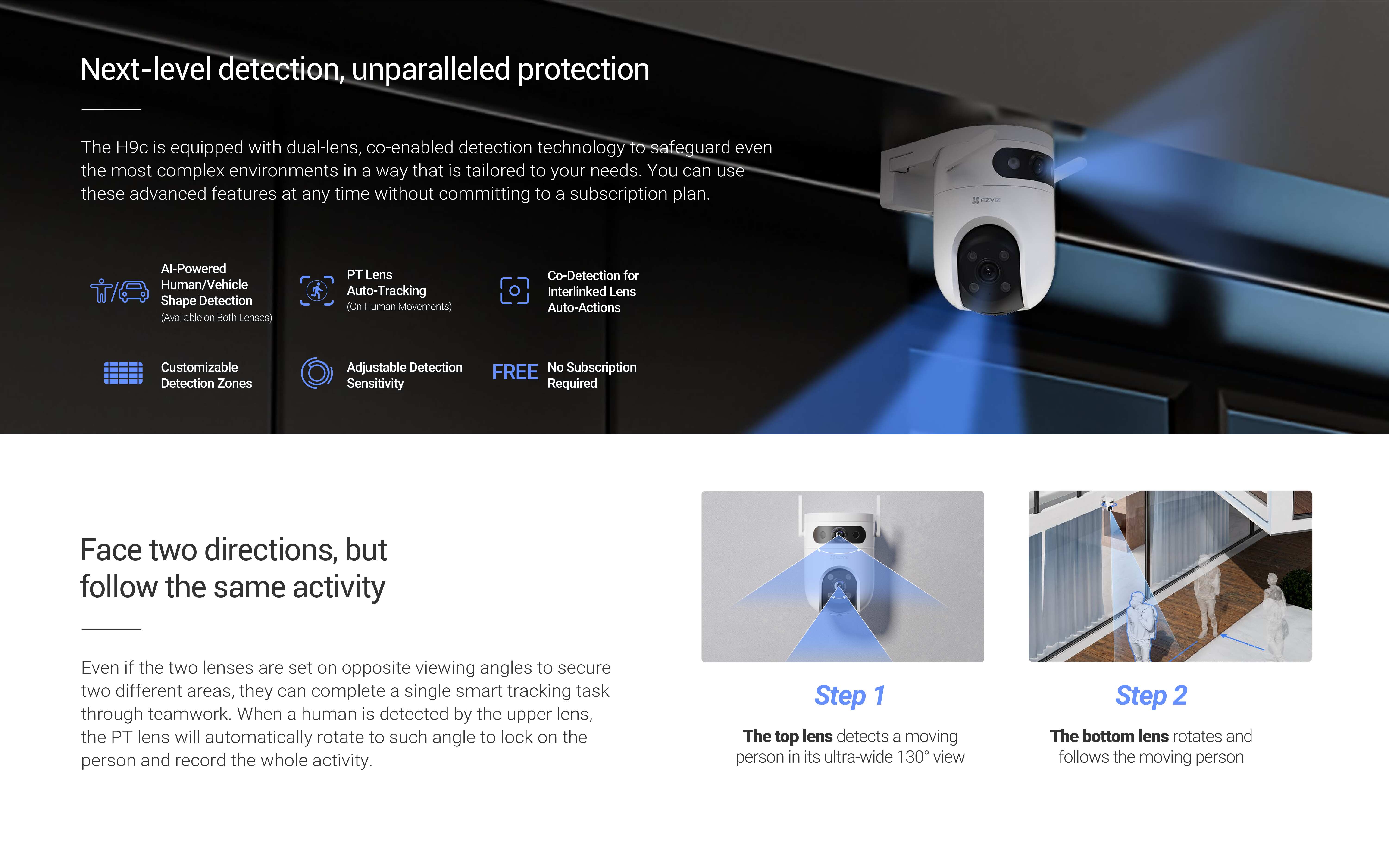 • Ezviz H9C Dual 2K Security Camera 3MP+3MP | Panoramic View | Color Night Vision |Two-Way Calling | CS-H9C-R100-8H33WKFL