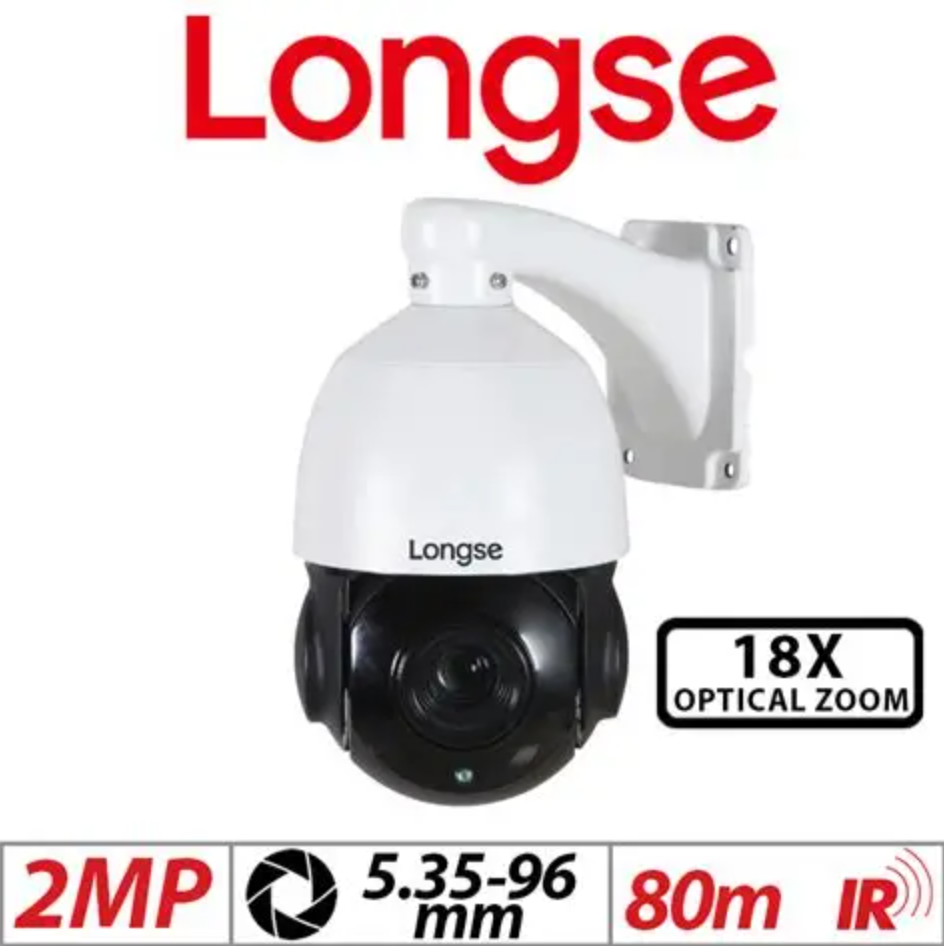 Longse PT5A018XIGC200 | 2MP 18X Outdoor IR PTZ IP Camera | Weatherproof, Two-Way Audio